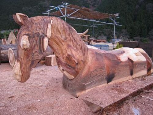 馬の実物大を注文によって再度彫っています。 今回はよりリアルになっています。