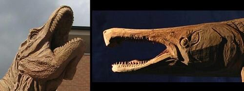 チェンソーカービングで歯を彫るポイントは一気に歯形を彫り込まないこと。 少しづつ丁寧にいくつかの角度から削りとっていく。歯となる部分の木目が欠けやすい場合が多いので慎重に。 「この歯もチェンソーだけですか?」と良く聞かれるポイントとなります。…