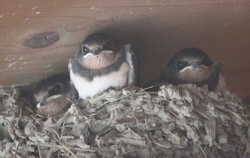 今年、うちのツバメたちはたくさんのヒナが孵りました。 もうすぐ巣立ちです。飛ぶ練習もはじめています。 でもまだ親ツバメが運ぶ餌を食べています。 親ツバメはこのヒナたちに大忙しで虫を運んできます。 そのお陰で我が家の周辺にはカメムシなどがいなく…