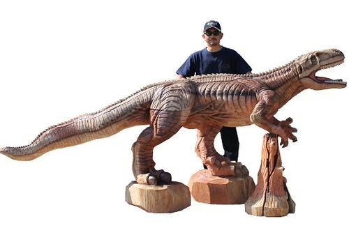 このたび22日に開催された第62回全国植樹祭2011わかやまの会場で展示するために彫っていた恐竜の彫刻が完成し、展示も無事に終えて、今日から道の駅龍游館で展示が始まった。つまり一般公開である。恐竜はカルノサウルス類の肉食恐竜で和歌山県から出土した…