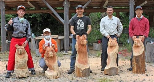 龍神チェンソーカービング倶楽部 5月度技術講習会 「クマ」の顔部 基礎講習 和歌山県田辺市龍神村殿原 練習場 受講者4名 10:00~16:30 ←投票御願いします