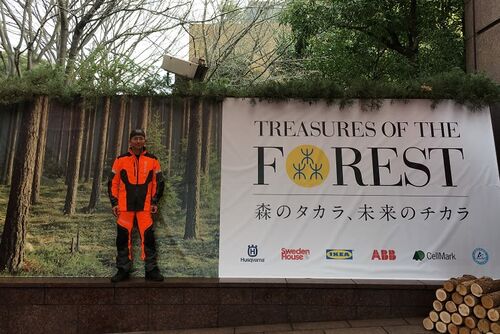 スウェーデン森林シンポジウム「Treasures of the Forest~森のタカラ、未来のチカラ~」オープニング・ハイレベルセミナー 2016年(平成28年)3月8日 火曜日 セミナー休憩時間にカービングショーを披露(15:00~15:45・実際のカービング時間20分程度) 会場…