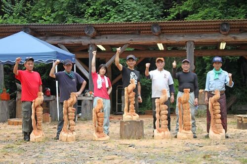 カービングスクール 2016 第三期 2016年(平成28年)7月12~14日(火~木) 和歌山県田辺市龍神村・殿原練習場 主催:(有)チェンソーアート・ジャパン 共催:龍神チェンソーカービング倶楽部 1日目 リスの彫り方 中上級者向け 受講生2名 2日目 チェンソーア…