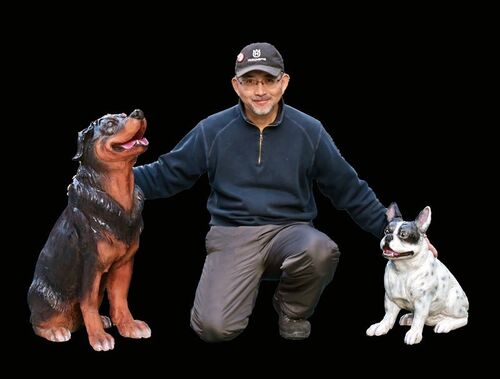 特別注文 愛犬彫刻 ロットワイラーとフレンチブル