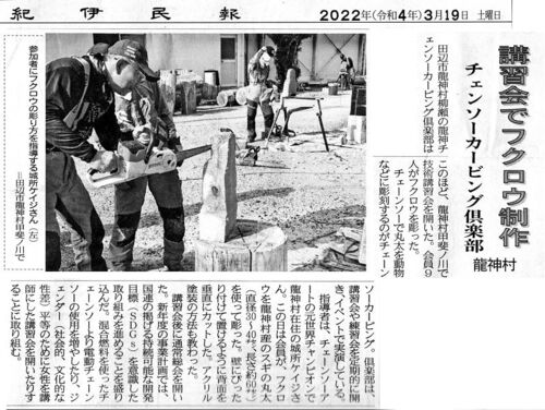 龍神チェンソーカービング倶楽部講習会&総会 新聞記事