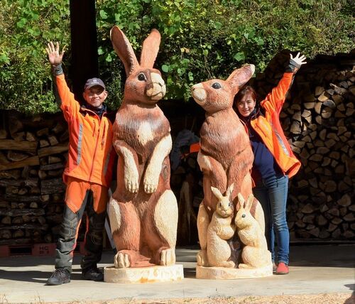 毎年恒例で彫らせていただいていた古殿町の巨大干支作品は新型コロナの影響により2年間お休みでしたが、今年は3年ぶりに彫らせていただきました。干支「卯」(うさぎ)です。120年生の古殿杉を使った高さ2.2mの巨大ウサギです。古殿町チェンソーアート文化…