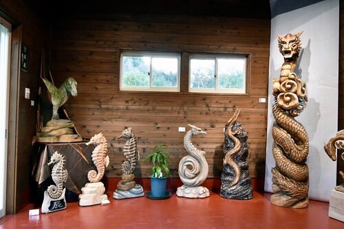 和歌山県事業再構築チャレンジ補助金2023の認定をいただき、旧じじばば直売所・よりあい施設の改装でギャラリー&直売所を開設しました。 展示名:チェンソーアーティスト 城所ケイジの作品展 「辰展」 場所:和歌山県田辺市龍神村柳瀬 重根石油様前 バーバ…