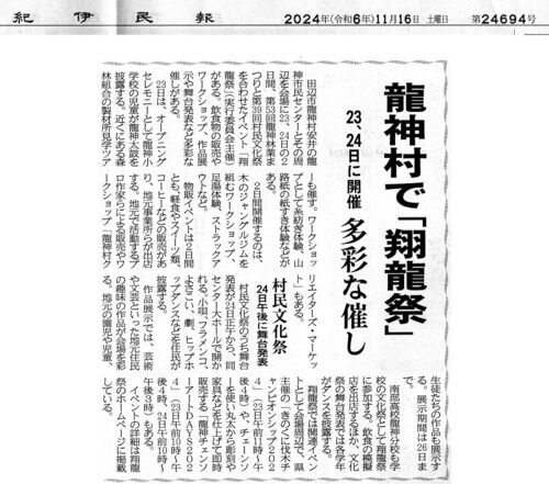 翔龍祭2024 本体イベントの予告記事 紀伊民報