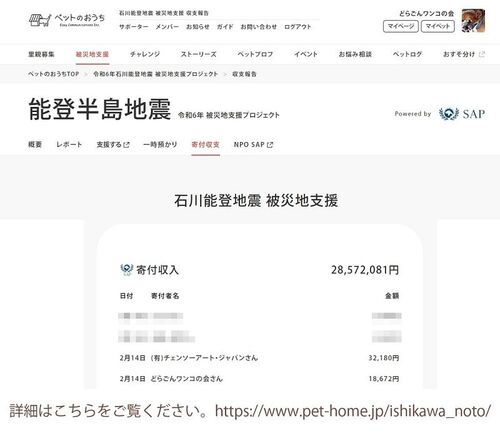 犬猫作品展 能登半島地震被災犬猫寄附金について 有限会社チェンソーアート・ジャパン どらごんワンコの会 寄附金箱に18,672円入っていましたので、売上げ利益から32,180円を足して50,852円を能登半島地震で被災された犬猫救済に寄附させていただきました。…