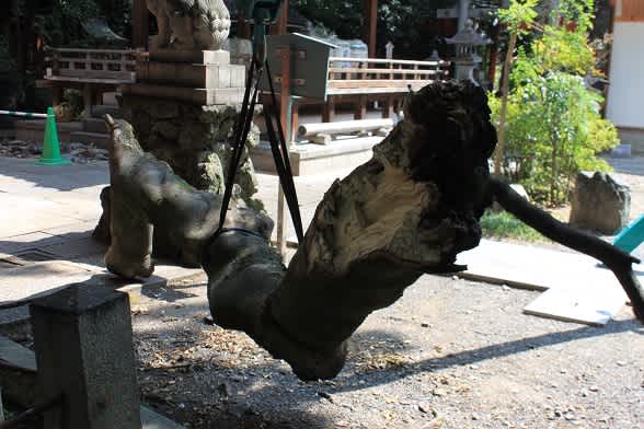 2013-08-23 武信稲荷神社様で御神木・龍神彫り 神社仏閣特別彫刻 2013年(平成25年)8月19~21日(月~水) 京都市中京区三条大宮町・武信稲荷神社様 御神木の枝が折落したものを彫刻 樹種:エノキ その木の言われ 御神木のエノキです そのままでも大迫力! 多くの縁者が集まってお手伝いしてくれています 土台、足を取り付けてくれた又吉木工師 沖縄出身です 塗装前の完成状態 塗装完成 反対側も見事です