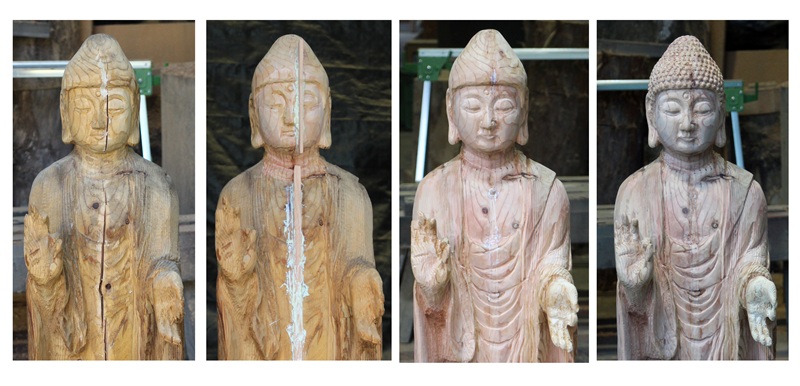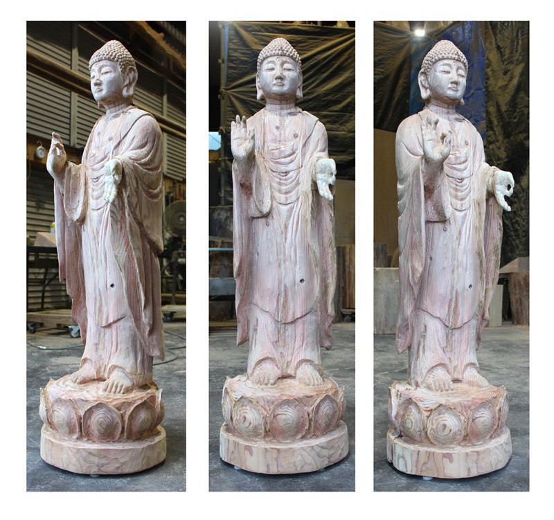 2025-10-06 阿弥陀如来リメイク2025 リメイク 最新作品紹介 特殊作品彫刻 神社仏閣特別彫刻 昔彫った阿弥陀如来像をリメイクしました。 2009年10月20日に彫ったもの。作品ナンバー2396 16年間、工房に置かれていたもの。 樹種:杉(寒新月切り)100年生 仕上げ:tatara セラミック撥水 マルチ塗装